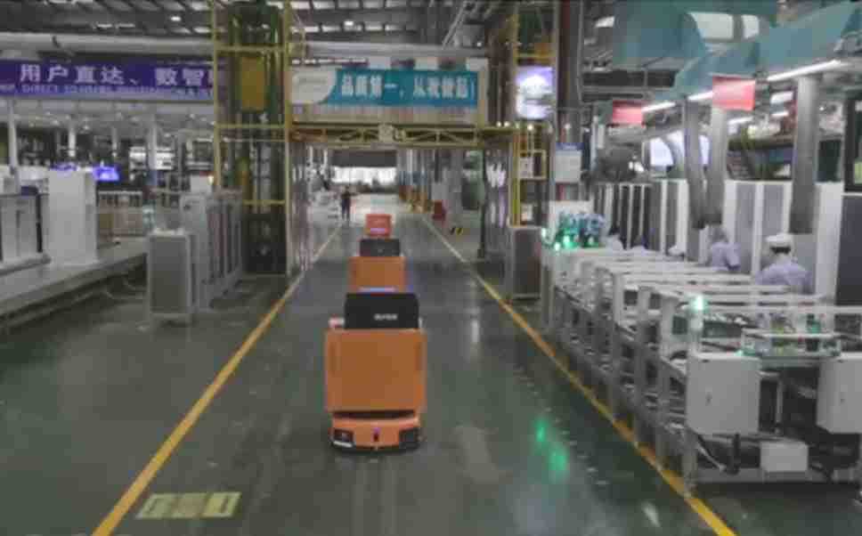 为车载冰箱物流配送打造的智能解决方案,,,包含产中物流通过潜伏举升AMR搬运至线边,,,产后成品物流智能仓储,,流程包含产中物流智能齐套入库,,,线边安灯叫料AMR智能配送至线边,,,成品入库、、、、出库,,,,通过无人堆高车机器人,,,,智能仓储管理替代人工作业管理,,,,实现更高存储、、、、更高效率、、、、更具柔性化的解决方案。。。。